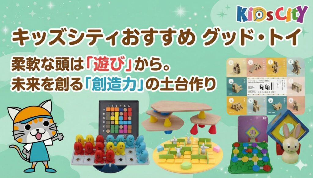 「キッズシティ」は、未来を担う子ども達が「子どもプログラミング」、「プログラミングおもちゃ」、「グッドトイ」で楽しく遊びながら、創造力と論理的思考力を育むことを応援します!